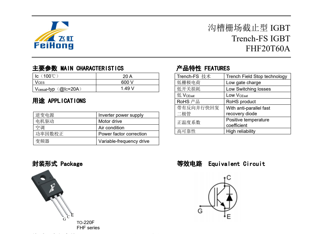飛虹60N1F10A,采用SGT工藝來獲得極低的RDSON導通內阻,飛虹產品具有寬泛的BV電壓,快速的開關能力和優異的抗短路性能,TO-220產品廣泛應用于各類DC/DC電源,DC-AC逆變器,AC-DC開關電源,UPS,儲能電源,園林工具和BLDC電機驅動等。可替代場效管:STP80N10F、SVG10120NAT、IPP126N10N3G